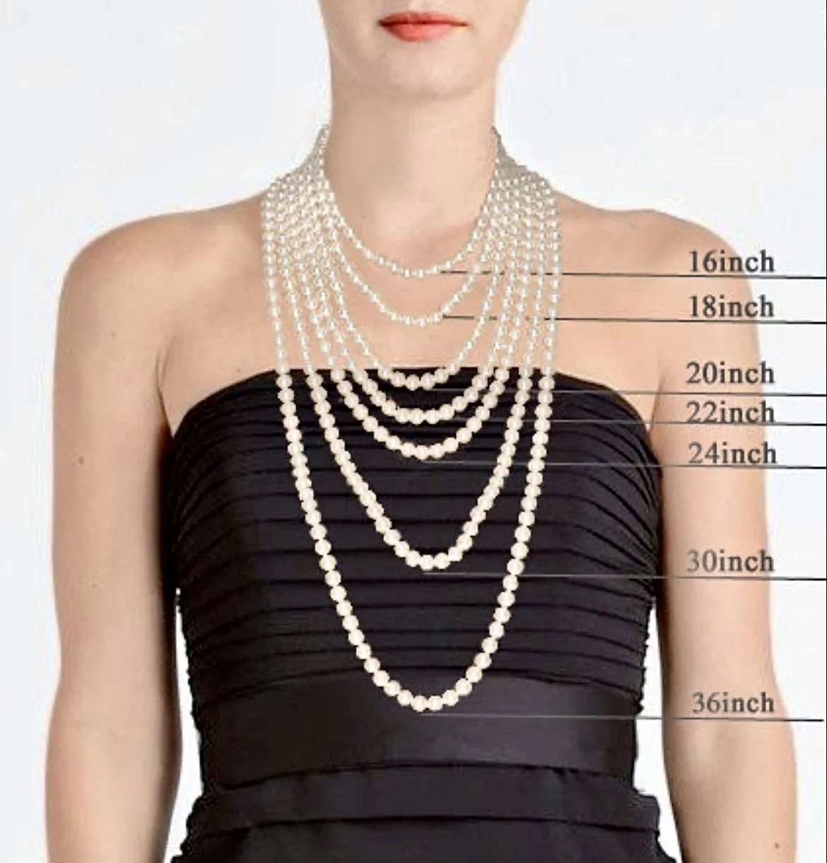 The Princess Necklace- 17-19” - This is the most common length for pearl necklaces, and well-suited for wear with crew and high necklines. It also compliments low, plunging necklines. Because 18” is consider a classic length, it is also an excellent choice if you are uncertain which strand length is most appropriate.